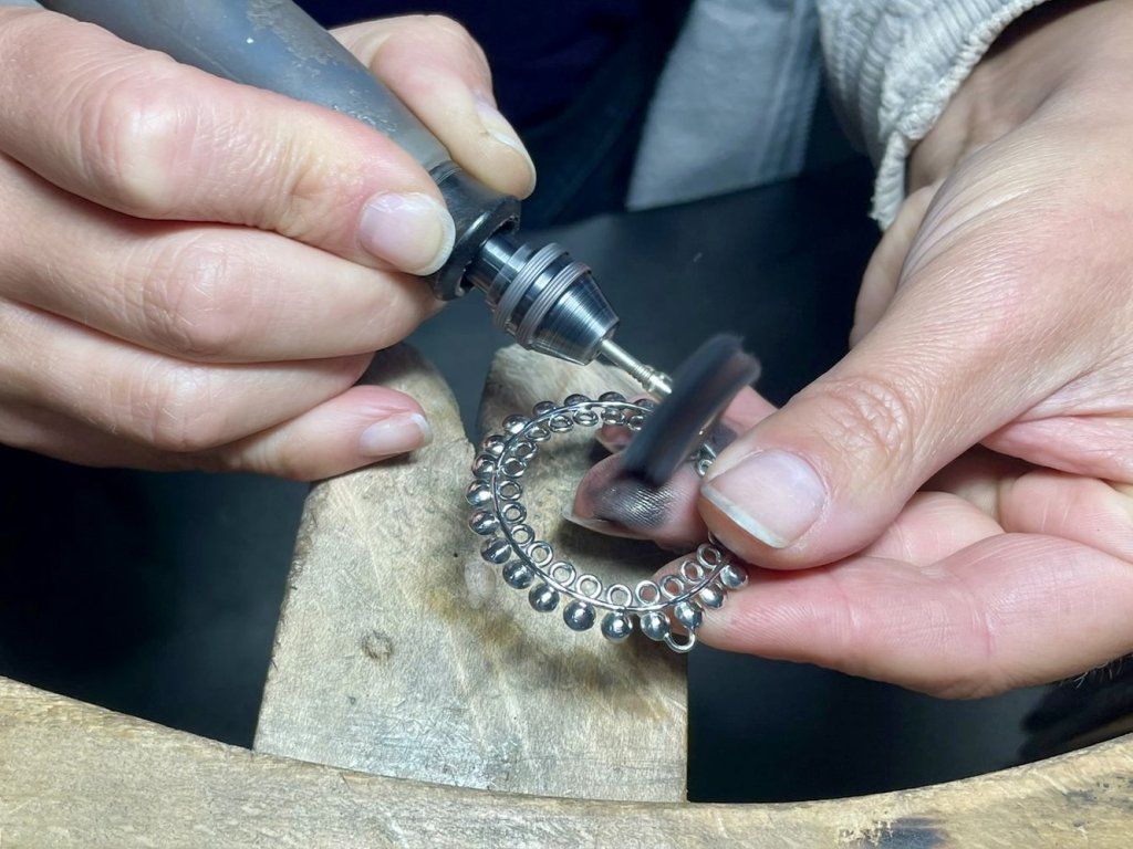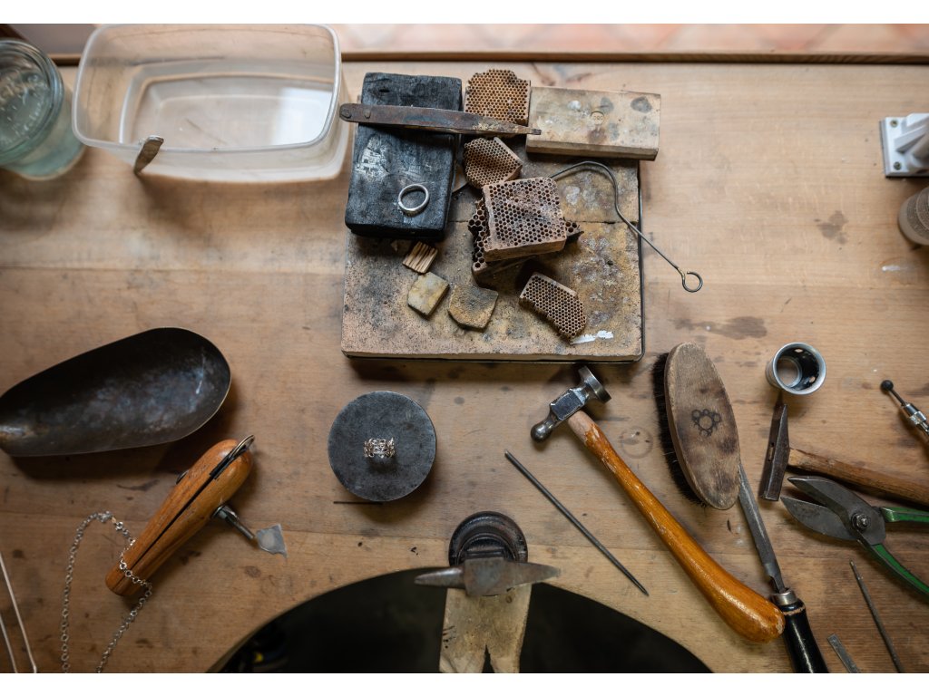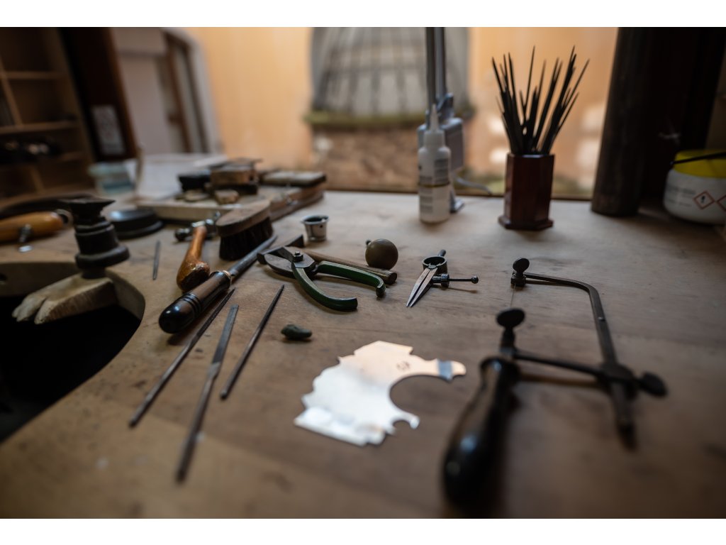 K dispozici máte plně vybavenou zlatnickou dílnu válcnou, dremlem, letovací pistolí, leštičkou, atd., a kvalitní nářadí a pomůcky potřebné pro práci s kovem.